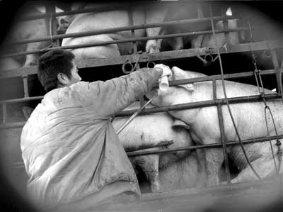 | 近日,本报(京华时报)接到举报称,在(北京)东六环施园北桥下的高速路应急车道上,有不法生猪商贩给生猪注水。记者经过暗访掌握了两家供应商制造“注水猪”的过程,并发现这些“注水猪”被运至通州区潞城镇工业园区的大红门肉类食品有限公司(以下简称肉食公司)。 12月5日,在获取大量证据后,记者将此事反映至有关部门。在执法过程中,有关部门虽未能抓到现行,但表示在高速路上给生猪注水的情况在北京尚属首次发现。目前,肉食公司已对上述两家供应商作出罚款5万元的决定,同时将对其永久取消供应关系。