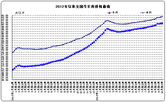 据对全国480个集贸市场畜禽产品和饲料价格定点监测,10月份第2周牛肉、羊肉和生鲜乳价格上涨,其他主要畜产品和玉米价格下降。