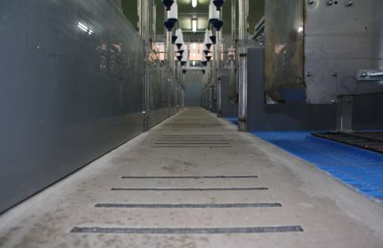 然而,仔猪的环境保持温暖,它们才会茁壮成长 - 对于它们来说,除了一盏灯,分娩栏的内侧要安置加热地板。这种非漏缝地板由里面的水加热,水则由热泵和空气洗涤器后面的的换热器加热。