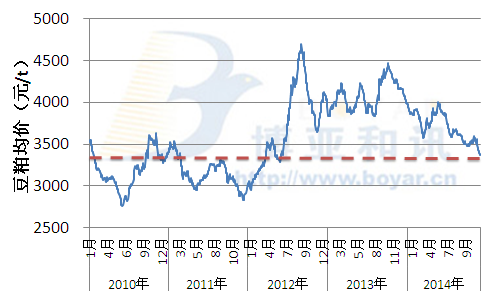 经过10月份强势反弹后,11月份美豆市场陷入两难之地,在增产和需求因素共同作用下展开震荡走势,并不断巩固1000美分/蒲式耳的支撑力度。相比之下,国内豆粕市场走势明显弱于外盘,豆粕期货市场跟跌不跟涨,豆粕现货价格持续下跌,月底跌至3374元/吨,创下2012年6月以来新低。 美豆出口需求利好提前透支后,基本面缺乏新的利多消息,且随着中国远期压榨利润下降,后市美豆出口可能后劲不足;丰产美豆逐渐向国内转移,进口大豆到港高峰期来临,国内豆粕现货将加速探底。 主要影响因素分析如下: (1)需求利好提前透支 出口后劲可能不足 由于今年美豆价格大幅下跌,中国买家积极抄底美豆,美豆出口需求表现强劲,美豆出口检验量持续攀升。迄今为止,2014/15年度的头12周,美国大豆出口检验总量为19,410,098吨,比上年同期的15,999,218吨提高了21.3%,上周是同比提高17.3%。其中,截至11月20日,本年度以来中国装运美国大豆数量为1350.3万吨。 但随着国内豆粕和豆油价格持续下跌,低价美豆压榨红利逐渐下降,远期大豆压榨利润大幅下降,后市国内加工商订购美豆意愿将减弱,美豆出口后劲可能不足。截止月底,国内豆粕现货跌至3370元/吨,部分地区跌破3200元/吨。 (2)畜禽存栏量低于预期 饲料企业备货积极性减弱 目前国内生猪市场行情反弹乏力,养殖盈利水平持续下降,农户补栏积极性大幅下降,当前仔猪价格已创2011年3月份以来新低,截至11月份,2014年仔猪平均出售价为23.26元/公斤,远低于仔猪出售成本均价26.28元/公斤。由于生猪养殖盈利下降,四季度畜禽存栏量低于预期,10月份生猪存栏量环比下降,能繁母猪存栏量继续下降。11月23日,农业部公布10月份4000个监测点生猪存栏信息显示,10月份生猪存栏量环比下降0.3%,同比下降6.5%,能繁母猪存栏量环比下降1.3%,同比下降11.3%。 在养殖需求不及预期,且国内豆粕现货供应转向宽松格局下,饲料企业备货积极性减弱,备货周期缩短至5-7天,以控制风险为主。同时,由于前期已储备部分远期合同,对远期合同需求也逐渐下降。 (3)油厂降价销售为主 库存压力不大限制跌幅 11月中旬,低价美豆已逐渐到港,国内油厂压榨利润大幅改善,油厂开机率逐渐回升,豆粕现货供应转向宽松,油厂降价销售为主,同时,积极预售远期合同,提前锁定利润。由于前期油厂积累了一些待执行合同,库存压力虽在上升,但总体还不突出,限制了国内豆粕现货的跌幅。 但目前未执行合同数量明显下降,在进口大豆到货加快背景下,未来库存压力增加的可能性偏大,国内豆粕现货价格将继续探底。 综上所述,出口利好提前透支后,美豆期价或偏弱震荡,若南美天气不出问题,美豆期价或维持在1000蒲式耳下方运行。丰产美豆逐渐向国内转移,国内大豆到港高峰期来临,油厂开机率将长期保持高位,豆粕现货库存有望回归高位,豆粕现货价格将加速探底。来源于:博亚和讯 |