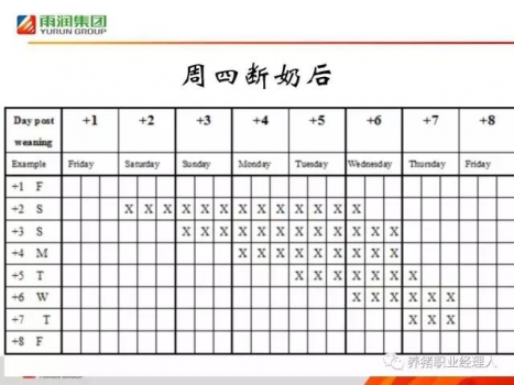 批次生产定义 生产上如何做到同期化 后备更新计划的制定 断奶时间控制与定时输精 批次生产中几点注意事项 1.两种生产系统之比较 2.批次生产定义 3天内配种 3天内分娩完 生产相同日龄相同体重猪只。 批次生产的优点如下: 1.阻断疾病传播,提高猪群健康水平 2.减少药物使用量,降低死亡率 3.猪只生长速度加快,上市日龄缩短(15-30天) 4.提高饲料效率,降低生产成本 5.节省工作时间,提高管理效率 6.环境及营养(日龄、公母)容易控制 7.定时定量后备母猪,繁殖猪群结构稳定 8.饮水(10%)及耗料(4%)可以监控,预知健康状况 9.大批母猪分娩寄养容易,整批猪出售整齐度好 10.场内使用公猪头数减少或外购精液 11.中小规模猪场也可以定期生产出大量苗猪 12.产房硬件维修、保养、清洗及消毒可大规模进行 13.人力成本降低(有计划生产、工作更集中、可以使用临时工) 14.人员主要集中在配种、分娩及保育,可以定时休假。 3.如何做到同期化生产? 撤出律期媒后7天内后备母猪100%会发情, 后备母猪使用律期媒平均时间为12天,在预期发情前5日开始使用 配种受胎率可以达到88%以上(150头后备试验), 产活仔数为10.13(范围1-15头,76头母猪产仔统计) 现场操作方式1,直接每头母猪喂饲 现场操作方式2,使用喂饲枪等辅助工具 4.猪群更新计划的制定及母猪驯化方式 5.猪只断奶时间控制与定时输精技术 6.批次生产注意事项断奶后母猪延迟发情是批次生产最大的变数。 尤其是第一胎母猪的饲养至关重要 要预防二胎母猪综合证,就要设法维持母猪体态, 特别是夏季注意消暑,增加母猪采食量,减少哺乳天数。 产房的温度管理至关重要。 感谢作者对此文的付出,畜牧人网站已获授权转载,若需转载的朋友,请联系作者! |