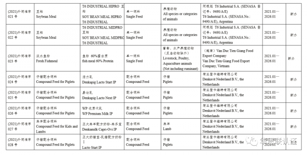 根据《进口饲料和饲料添加剂登记管理办法》有关规定,批准以色列Galam有限责任公司等48家公司生产的100种饲料和饲料添加剂产品在我国登记或续展登记,并发给进口登记证(见附件1)。批准饲料级DL-蛋氨酸(DL-Methionine Feed Grade)生产厂家名称变更(见附件2)。所登记产品的监督检验,按中华人民共和国国家标准和我部发布的质量标准执行。 特此公告。 附件: 1、 进口饲料和饲料添加剂产品登记证目录(2021-01).doc2、 换发进口饲料和饲料添加剂产品登记证目录(2021-01).doc农业农村部 2021年1月14日 来源:农业农村部 |