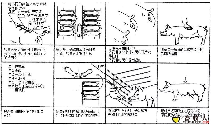 (1)检查有多少后备母猪和经产母猪可以配种,所有母猪都至少输精两次。一般规模化猪场都输精3次以上。