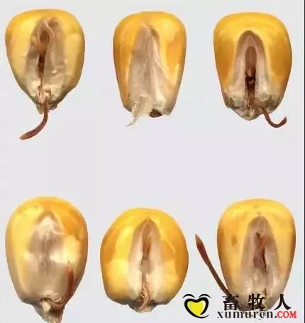 四、生芽粒。芽或幼根突破表皮,芽或幼根未突破表皮但胚部表皮已明显破裂或隆起,有生芽痕迹的颗粒。生芽粒超标不但玉米营养价值严重降低还很有可能感染霉菌。