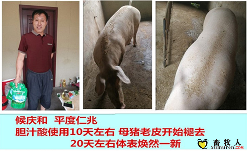 这些变化的背后是母猪进入亚健康,猪场开始进入不稳定期的征兆。在养殖一线我们通常能够观察到:凡是有泪斑、老皮、背部铁锈线的母猪成产成绩偏低,所产仔猪健康程度差,易发病,淘汰率高,使用年限短。 泪斑、老皮,铁锈线实际上是母猪体内毒素严重蓄积,损伤肝脏之后的外在表现。 肝脏开窍于目,毒素过多无法通过正常途径排出就会通过猪的眼睛排出,表现为泪斑;毒素通过皮肤排出,在体表表现为铁锈线,老皮。 肝脏的第一大功能是合成分泌胆汁,胆汁是肝脏发挥功能的重要载体!肝脏许多重要功能的实现也是要靠胆汁在体内的循环。当肝脏受损之后,首先出现胆汁的合成分泌减少。所以,保肝第一步就是要保证肝脏分泌的胆汁充足! 胆汁酸是猪胆汁的主要成分,天然提取而来,具有和猪自身分泌的胆汁完全相同的生理功能!外源性的添加胆汁酸可以第一时间弥补肝脏受损引起的胆汁不足,帮助肝脏快速排出蓄积的毒素; 通过肝肠循环回到肝脏的胆汁酸可以刺激肝细胞分泌更多稀薄胆汁,畅通胆道; 胆汁酸的添加可以提高肝脏内多种酶的活性,修复受损肝细胞功能。 在现场实践中,我们在母猪饲料中添加胆汁酸 1kg/吨 ,可以在10天左右看到泪斑开始消除,母猪老皮开始褪去,20天左右泪斑及老皮问题就可解决,母猪焕然一新。 并且后续可以观察到解决此类问题的母猪整体的健康程度提升,所产仔猪健康程度和产房仔猪腹泻率降低,猪场猪群稳定性大大提升! |