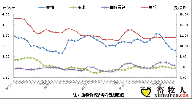 图1 2015~2019年4月饲料大宗原料月度采购均价走势图