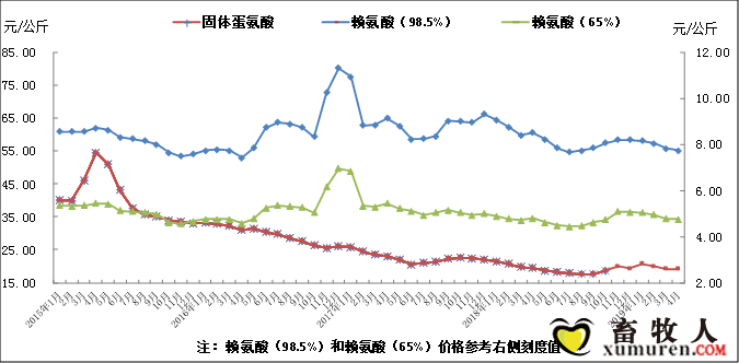 图2 2015~2019年4月赖氨酸、蛋氨酸月度采购均价走势图