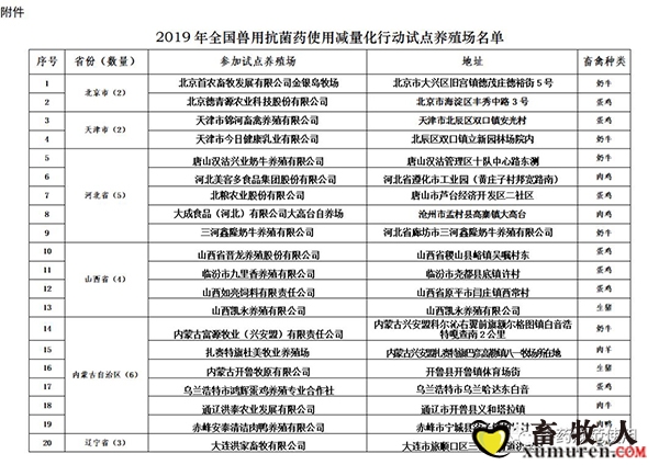 附件:2019年全国兽用抗菌药使用减量化行动试点养殖场名单