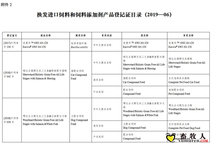 2. 换发进口饲料和饲料添加剂产品登记证目录(2019—06)