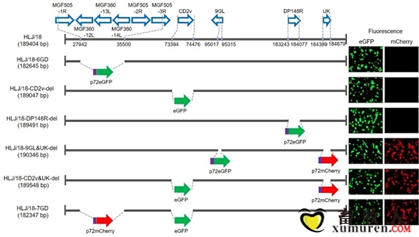 图1:非洲猪瘟病毒不同基因缺失候选疫苗的构建