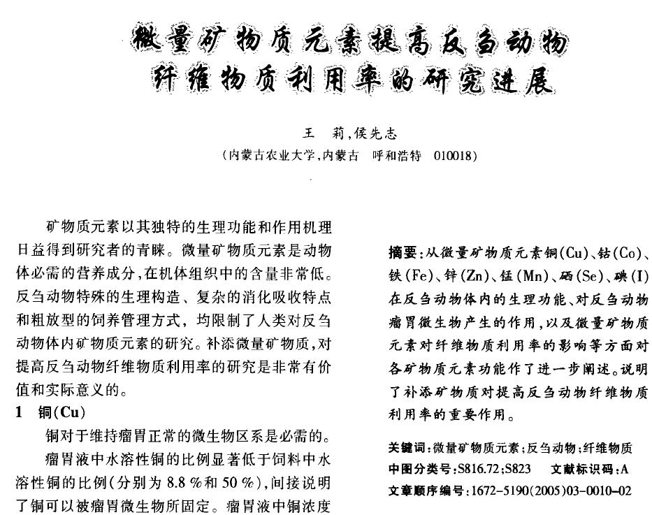微量矿物质元素提高反刍动物纤维物质利用率的研究进展
