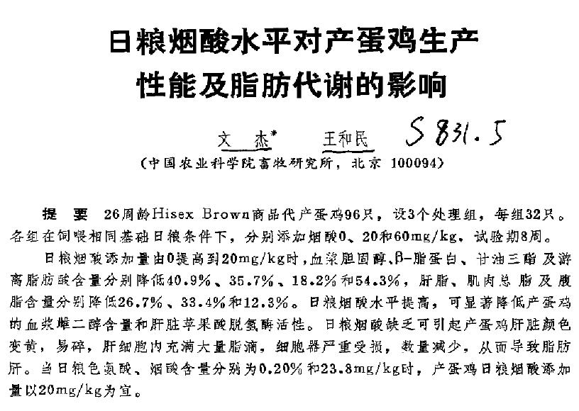 内容介绍:日粮烟酸水平对产蛋鸡生产性能及脂肪代谢的影响