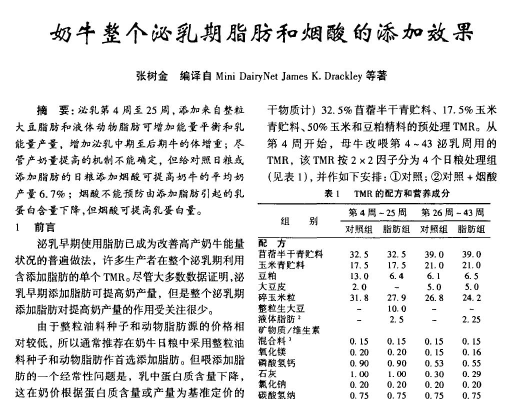 奶牛整个泌乳期脂肪和烟酸的添加效果