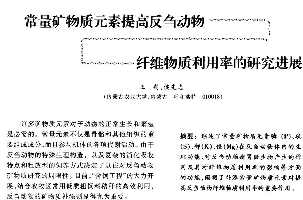 内容介绍:常量矿物质元素提高反刍动物纤维物质利用率的研究进展