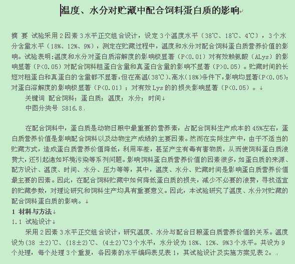 内容介绍:温度水分对储藏中配合饲料蛋白质的影响