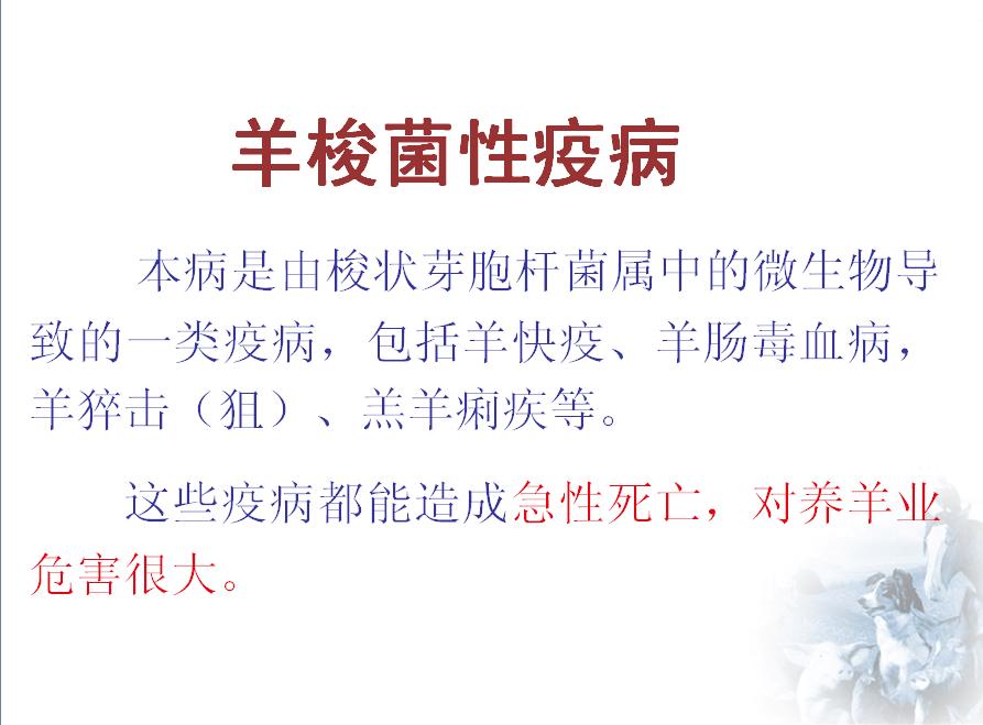 内容介绍:大学课件。介绍牛、羊常见传染病。既有理论研究进展,又有实践运用。