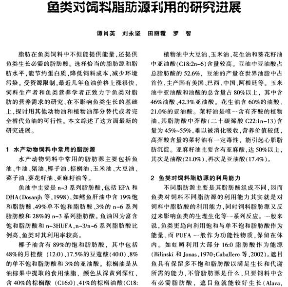 下载地址:鱼类对饲料脂肪源利用的研究进展