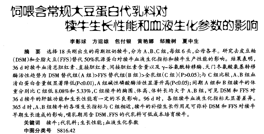 下载地址:饲喂含常规大豆蛋白代乳料对犊牛生长性能和血液生化参数的影响