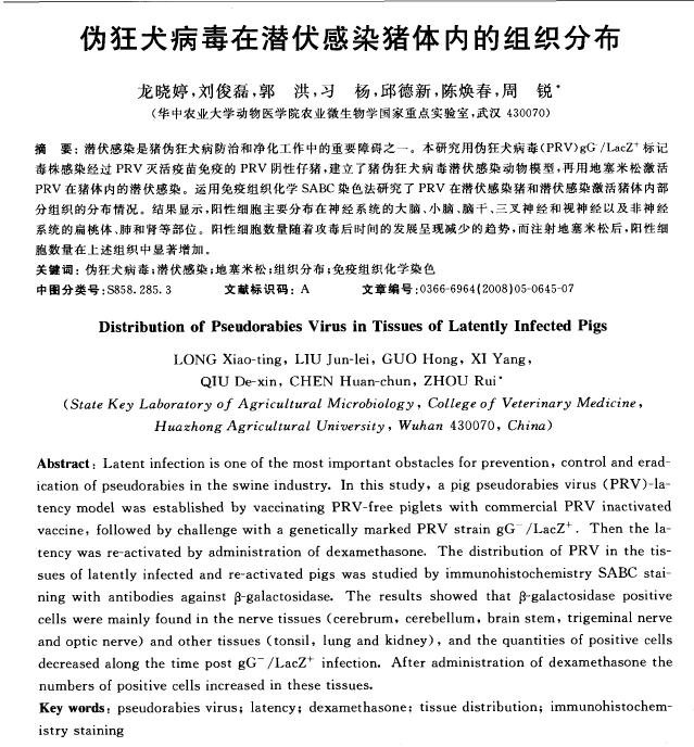 下载地址:伪狂犬病毒在潜伏感染猪体内的组织分布
