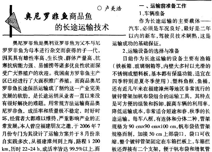 内容介绍:奥尼罗非鱼商品鱼的长途运输技术