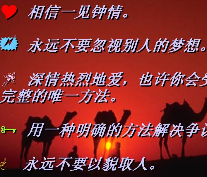 内容介绍: 一个绝好的调整心理、激发斗志、对每个人都有用的幻灯片材料,特别是处于逆境或有困惑的人,建议大家必看。(好东西不敢独享)