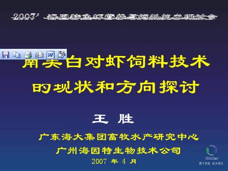 内容介绍:王胜-南美白对虾饲料技术的现状和方向探讨