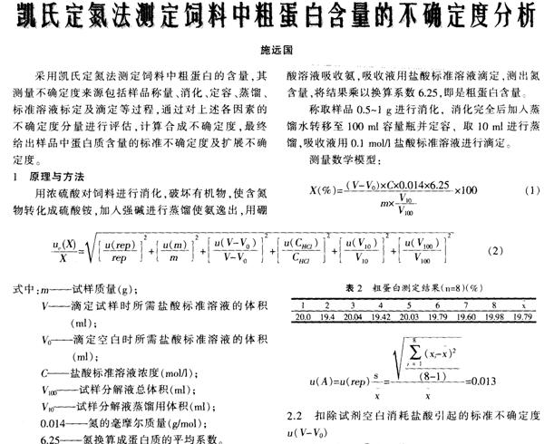 凯氏定氮法测定饲料中粗蛋白质含量的不确定度分析