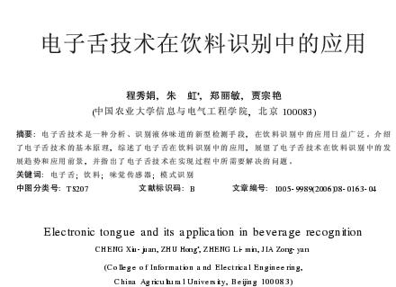 内容介绍:电子舌技术在饮料识别中的应用,或许在我们的动物性食品安全监测有用。