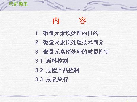 内容介绍:预处理饲料级微量元素的加工工艺与品质控制!成都蜀星饲料有限公司