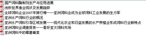 内容介绍:包括多个pdf文档,是小弟收集的。 内容有:《国产饲料酶制剂生产与应用进展》, 《浅析世界渔业现状及发展趋势》, 《全球饲料企业2007年排行榜——亚洲饲料业成为全球饲料工业发展的生力军》, 《亚洲水产饲料行业的概况,亚洲水产饲料引导区域发展——现代化农业和日益发展的水产养殖业形成饲料行业新特点》, 《亚洲饲料业调查报告——看好亚太饲料市场,亚洲饲料中的霉菌毒素》等。