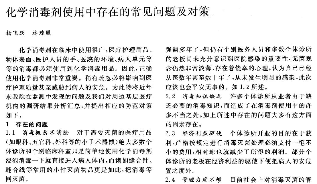 内容介绍:化学消毒剂使用中存在的常见问题及对策.pdf