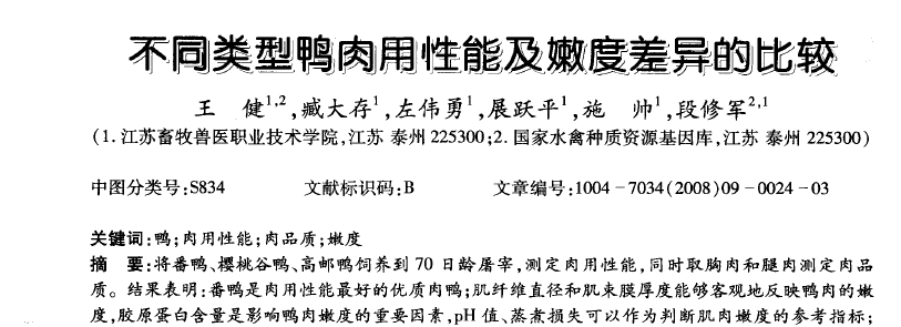 内容介绍:不同类型鸭肉用性能及嫩度差异的比较