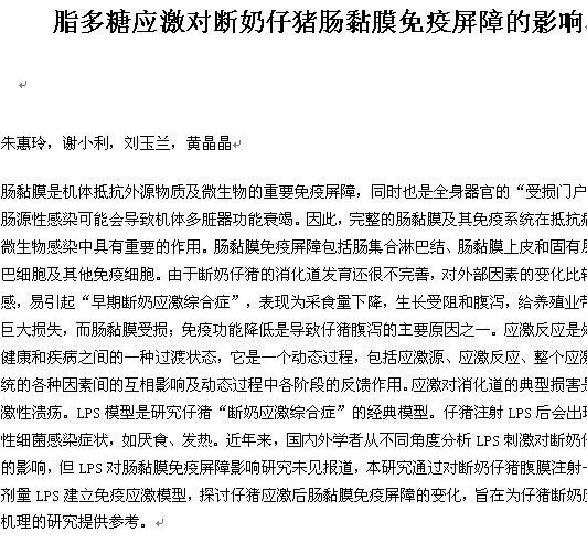 脂多糖应激对断奶仔猪肠黏膜免疫屏障的影响