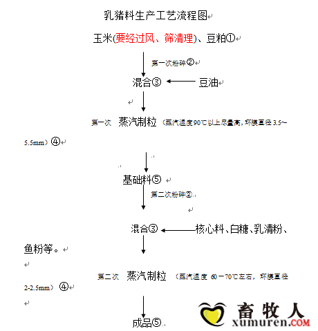 1.选用最好是内蒙古通辽甜、发霉率≤1%的玉米与豆粕,粉粹前必须清理好设备里的残留饲料,第一次粉碎必须按粒度要求粉碎,太细会导致第一次制粒困难或无法制粒,同时要严格按规定比例将原料混合再进行第一次制粒;