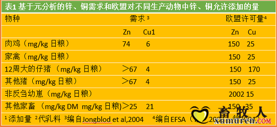 锌和铜是必需的营养素,在动物饲料中允许添加的量高于实际需求