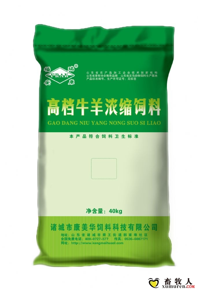 康美华饲料科技有限公司 肉牛浓缩料1、含有丰富的肉羊所需的氨基酸,维生素,微量元素及生长因子。2、适口性好,牛增生快,配料简便,有效利用粗饲料。 3、调节瘤胃内动镜,增加纤毛虫等微生物活力,提高消化率。4、增强免疫力,提高抗病力