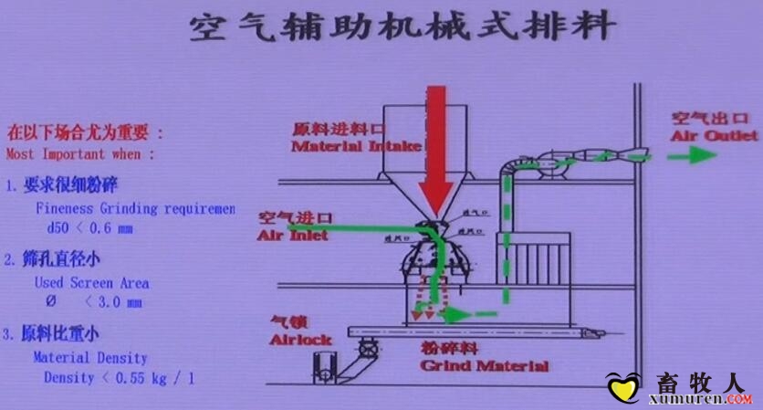 ⑷、粉碎含油高原料(如家禽下脚粉)与谷物混合后一起进行。