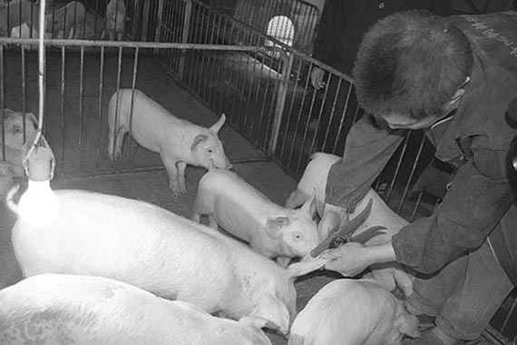 由电脑配制个性食谱的“芯片猪”个个身体倍儿棒,黑龙江省哈尔滨市巴彦县采用多种高科技喂养的“芯片猪”为食品安全把住了头道关。2011年该县生猪产量达到320万头,在全国名列前茅,在2015年其生猪饲养量将达到700万头,成为全国生猪大县。