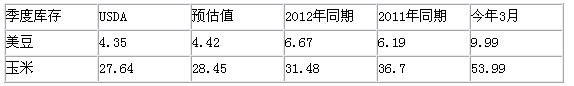 USDA季度库存报告:(亿蒲式耳)