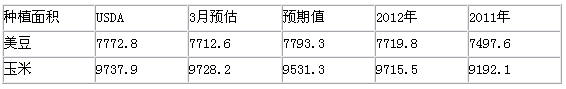 USDA种植面积报告:(百万英亩)