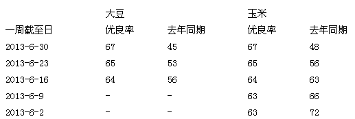 28日报告预期玉米种植面积为9737.9万英亩,为自1936年以来最高水平,高于市场预估206万英亩,且仍较去年种植面积增加22万英亩,这使得CBOT玉米价格下跌超过25美分。但旧作库存27.64亿蒲,低于预期及去年同期水平,给予近月合约以支撑。目前受美国中西部天气状况对作物生长非常有利,截止6月30日当周的玉米作物优良率为67%,高于去年同期的48%,令市场再次承压,远月呈现弱势状态。
