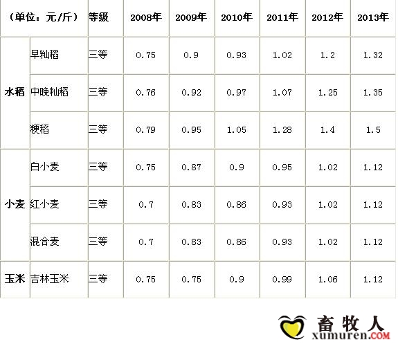 第二,玉米保护价首次与小麦持平。从2008-2013年各品种保护价提高幅度和价位来看,以吉林玉米为例,吉林玉米保护价除2009年以外均高于三等混麦/红麦价格,而2013年保护价提高0.06元/斤后与三等小麦平价。显然,政府在决策上既考虑到了保护农民利益,又考虑到了和其他品种之间面积分配和比价关系,未来玉米提高幅度也将参考小麦价格。 表:2008—2013年水稻、小麦和玉米托市保护价